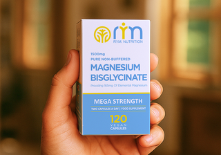 RYM Nutrition Magnesium Bisglycinate is a 100% pure, mega-strength magnesium, with no added fillers or binders, supplying 165mg of elemental magnesium per 2 capsules serving, in vegan capsules.