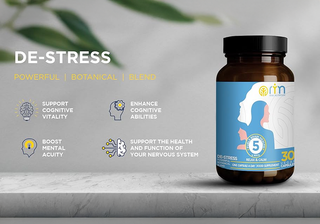RYM De-Stress - Relax & Calm: This one a day, comprehensive blend of botanicals and nutrients is designed to reduce stress and anxiety, improve mood and balance energy. Featuring highly concentrated extracts of Holy Basil, Ashwagandha, Reishi, Siberian Ginseng with L-theanine, neuro-vitamins and more. Take with breakfast to help meet the demands of the day ahead.