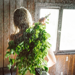 At the centre is our Nordic Water Activator — a modern interpretation of löyly, the steam released and Birch leaves in a Finnish sauna. It transforms cleansing into a warm, immersive reset, encouraging a pause.
