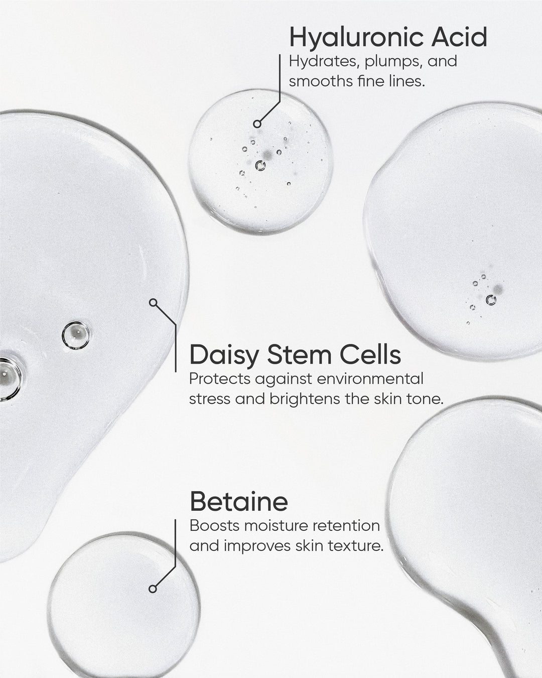 Aqua, Glycerin, Betaine, Rosa damascena floral water, Saccharide Isomerate, Cucumis Sativus Fruit Extract, Glucono-delta-Lactone, Panthenol, Phenoxyethanol, Polysorbate 20, Aloe Vera Juice, Globularia Cordifolia Callus Culture Extract, Sodium benzoate, Potassium sorbate, Sodium Hyaluronate , Allantoin, Ethylhexylglycerin, Citric Acid, Sodium Citrate.