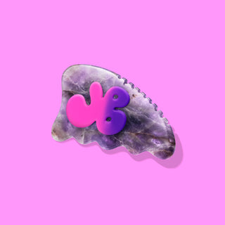 Boost microcirculation, stimulate lymphatic drainage and relieve stress with our body gua sha massage tool. Made of purple amethyst, known for its healing properties and used for centuries to promote strength, clarity and calm, each gua sha stone is entirely unique.