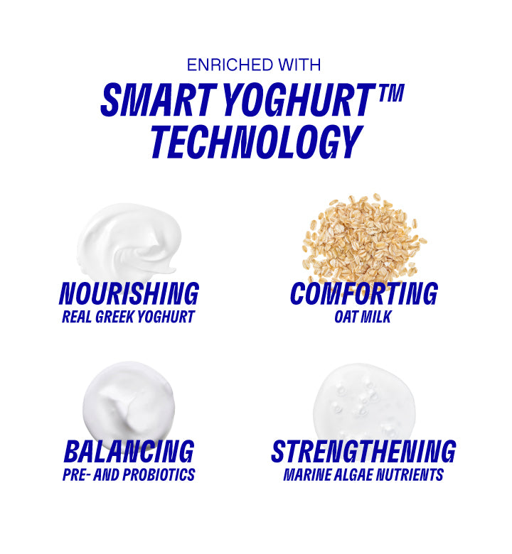 Aqua/Water/Eau, Glycerin, Pentylene Glycol, Propanediol, Maltodextrin, 1,2-Hexanediol, Algin, Alpha-Glucan Oligosaccharide, Ammonium Acryloyldimethyltaurate/VP Copolymer, Avena Sativa (Oat) Kernel Extract, Avena Sativa (Oat) Meal Extract, Bisabolol, Caprylic/Capric Triglyceride, Caprylyl Glycol, Chlorella Vulgaris Extract, Citric Acid, Disodium Phosphate, Ethylhexylglycerin, Glyceryl Acrylate/Acrylic Acid Copolymer, Glyceryl Oleate Citrate, Glyceryl Polyacrylate, Helianthus Annuus (Sunflower) Seed Oil, Hydroxyethylcellulose, Lactic Acid, Lactobacillus, Lactobacillus/Arundinaria Gigantea Ferment Filtrate, Laminaria Digitata Extract, Leuconostoc/Radish Root Ferment Filtrate, Maris Aqua/Sea Water/Eau De Mer, Phenethyl Alcohol, Polymnia Sonchifolia Root Juice, Potassium Phosphate, Pullulan, Saccharide Isomerate, Serine, Sodium Carboxymethyl Beta-Glucan, Sodium Gluconate, Sodium Hyaluronate, Sodium Hydroxide, Sodium Polyacrylate, Tocopherol, Trehalose, Urea, Yogurt, Yogurt Powder, Zingiber Officinale (Ginger) Root Extract, Potassium Sorbate, Sodium Benzoate, Sodium Dehydroacetate.