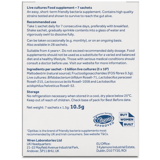 Each sachet provides 5 billion live cultures (5 x 10 9) + 0. 3g FOS fibres.