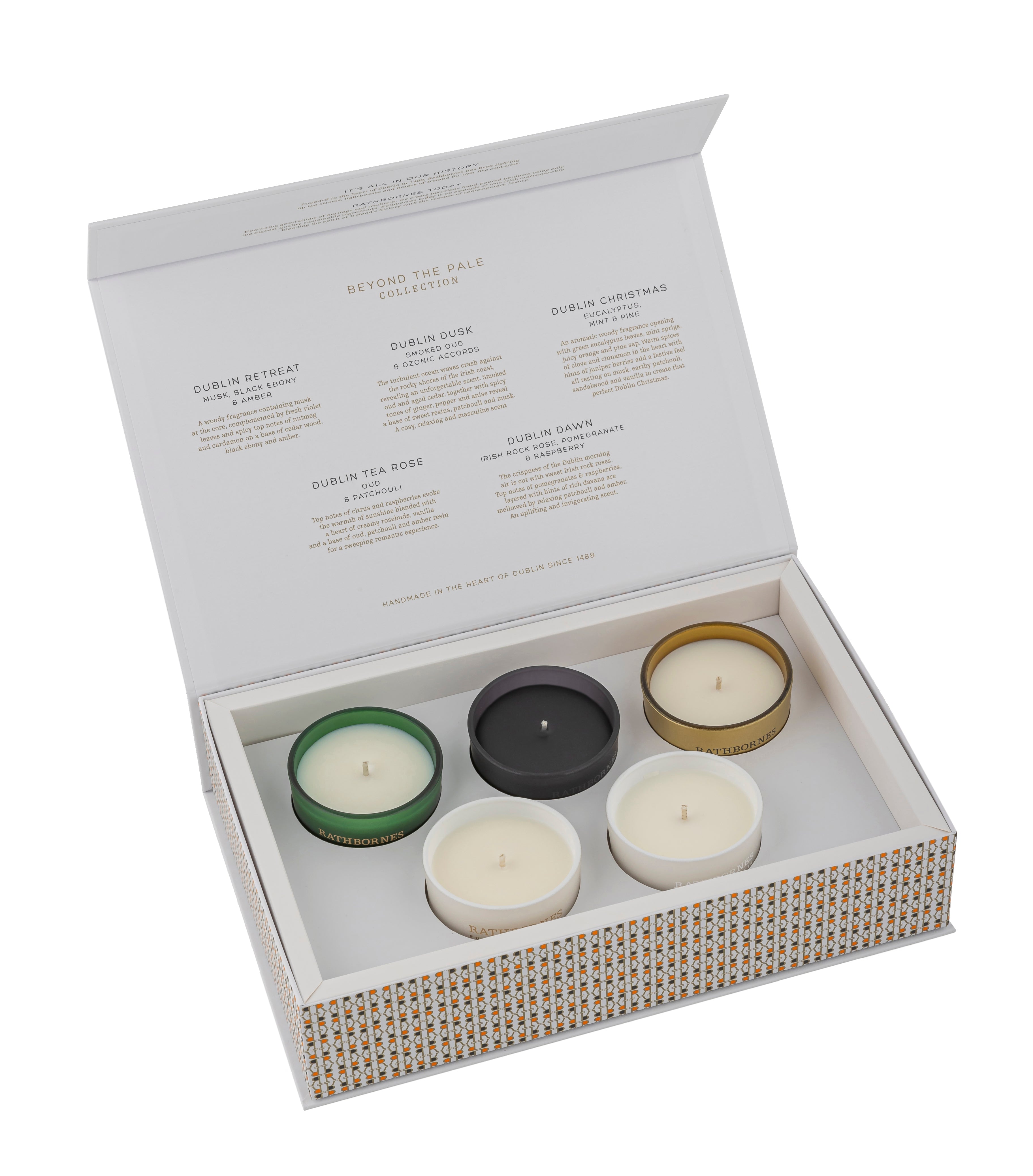 trimethyl-3-cyclopenten-1-yl)-2-buten-1-ol, Benzyl salicylate; Geraniol; Linalool; alpha-iso-Methylionone; dl-Citronellol. Dublin Retreat:1-(1,2,3,4,5,6,7,8- Octahydro-2,3,8,8- tetramethyl-2- naphthalenyl)ethanone; 1,3,4,6,7,8-Hexahydro- 4,6,6,7,8,8- hexamethylcyclopenta- gamma-2-benzopyran; Coumarin; Diethyl phthalate Dublin Dusk Candle: Benzyl salicylate; 1-(1,2,3,4,5,6,7,8-Octahydro-2,3,8,8-tetramethyl-2-naphthalenyl)ethanone; cis-3-Hexenyl salicylate; 4-tert-Butylcyclohexyl acetate; Diethyl phthalate Dublin Dawn Candle: 1-(1,2,3,4,5,6,7,8-Octahydro-2,3,8,8-tetramethyl-2-