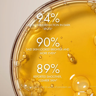 A gentler alternative to hydroquinone treatments this targeted peel contains professional-strength actives that work together to tackle discolouration. A stable form of vitamin C is combined with Radianskin™ a patented breakthrough molecule that inhibits the production of melanin fading existing dark spots and preventing new pigmentation from developing.