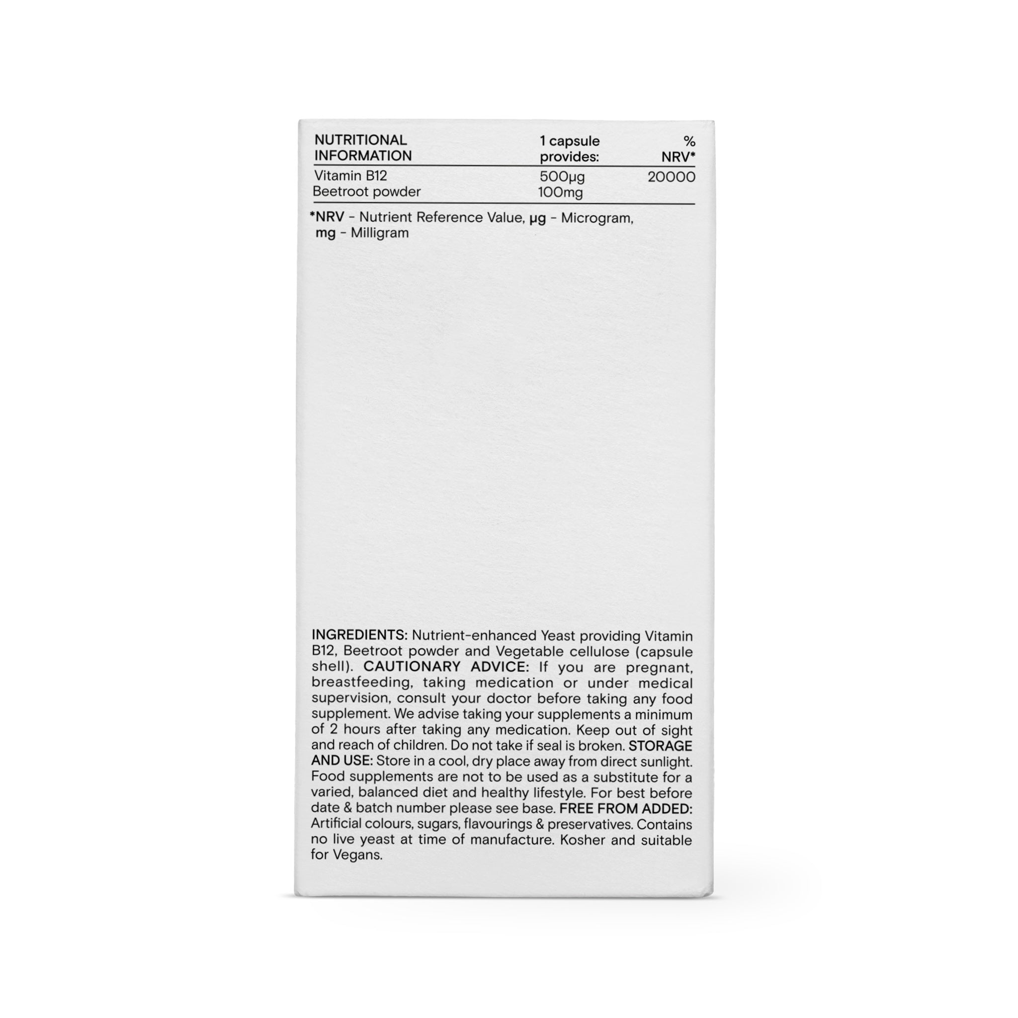 As well as contributing to normal red blood cell formation, Vitamin B12 supports normal energy release and fatigue reduction.